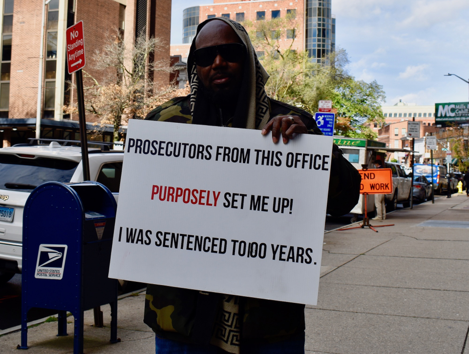Henry joined a group of other Black men in New Haven who have asserted and in many cases proven that their convictions were unjust outside the downtown courthouse on Wednesday.